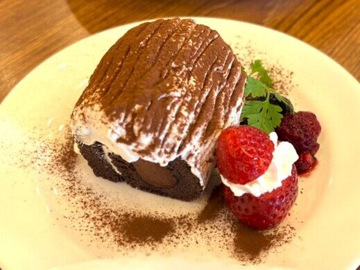今年のデザートは、サンタを模した苺が可愛らしいブッシュドノエルです!