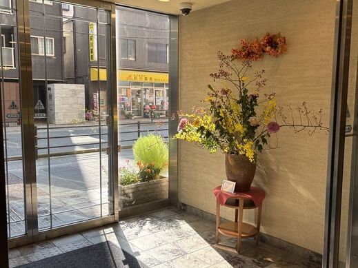 生け花は、10月から風除室へお引越し。
