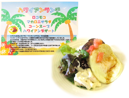 先日、イベント食としてハワイアンランチを開催いたしました。
