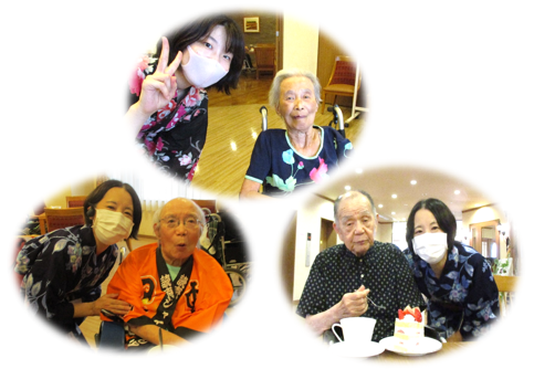 スタッフの浴衣姿は、皆さまに大好評で、普段は控えめでいらっしゃるゲストが