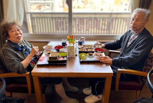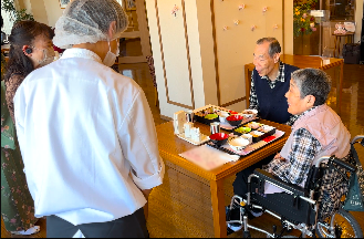 配膳や服薬を行うサービススタッフのエプロンも、この日のために新調!