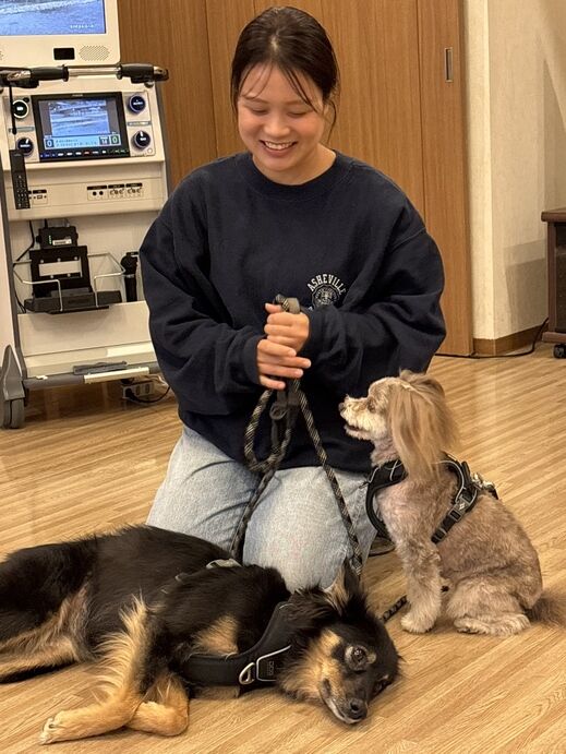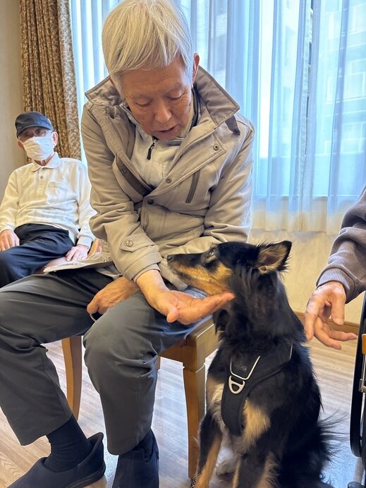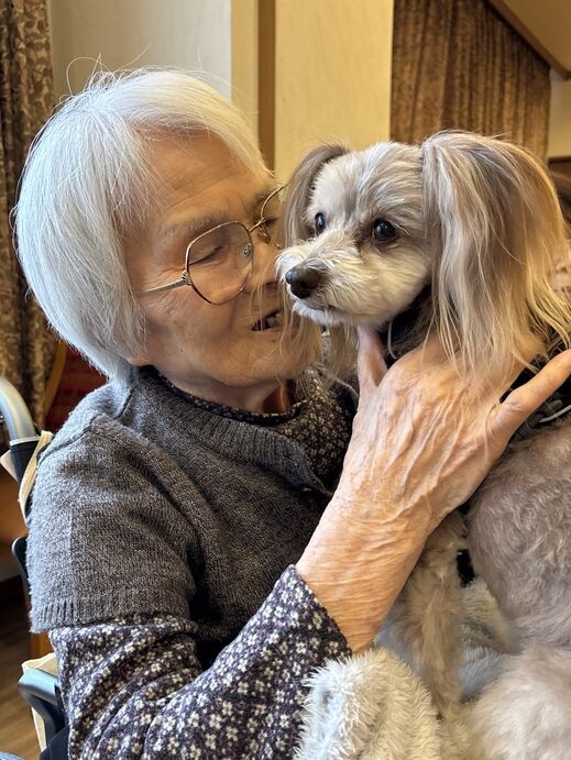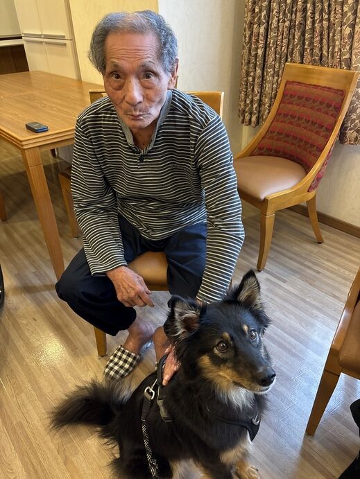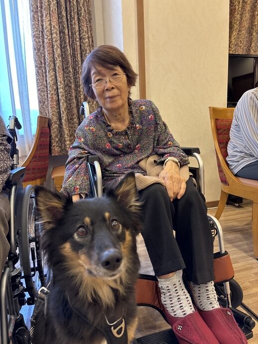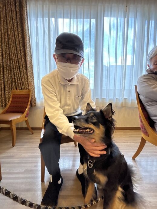 今回は皆さまに大変ご好評いただいている「ドッグセラピー」の様子を