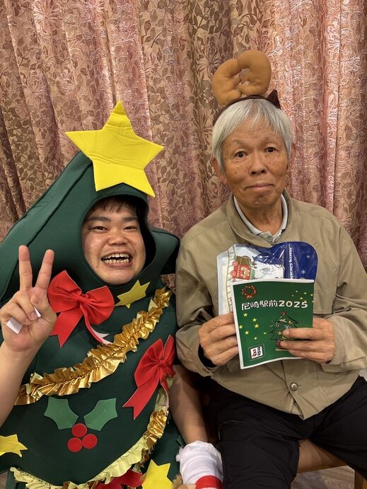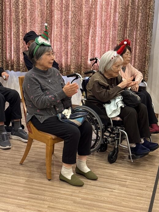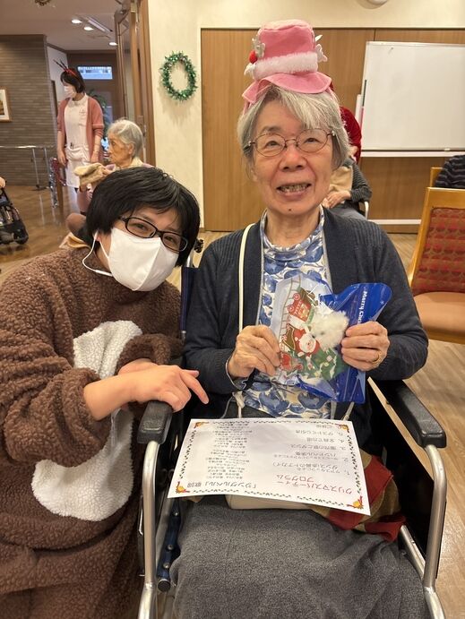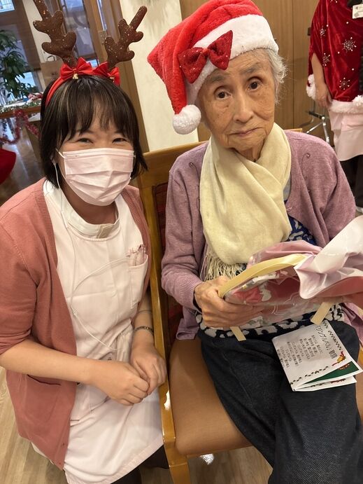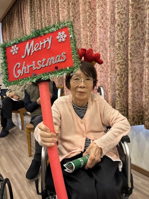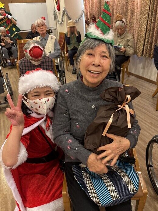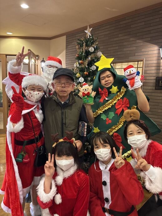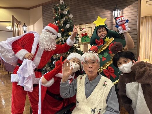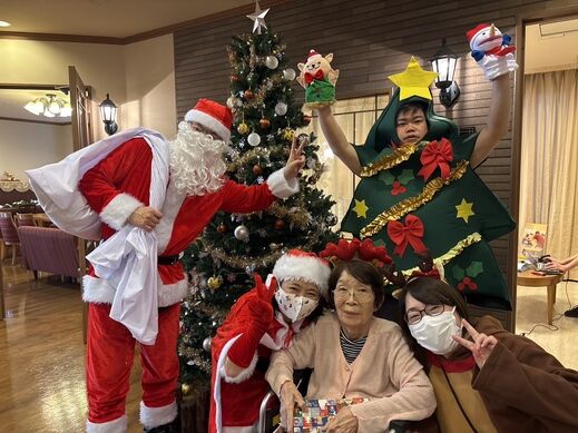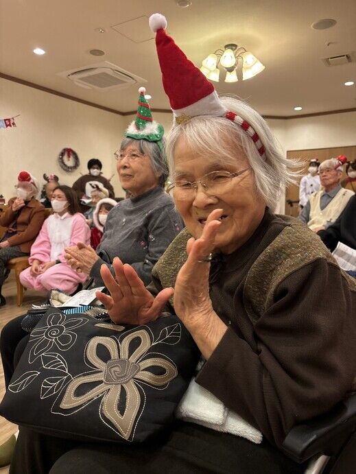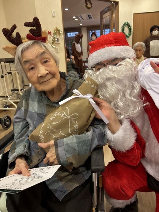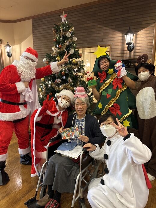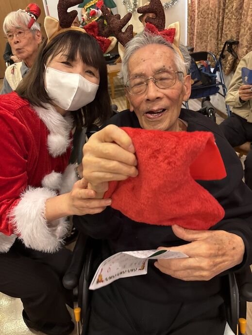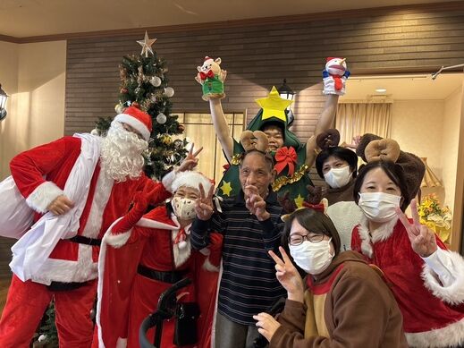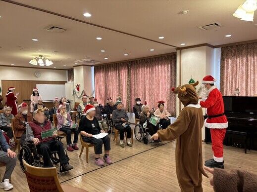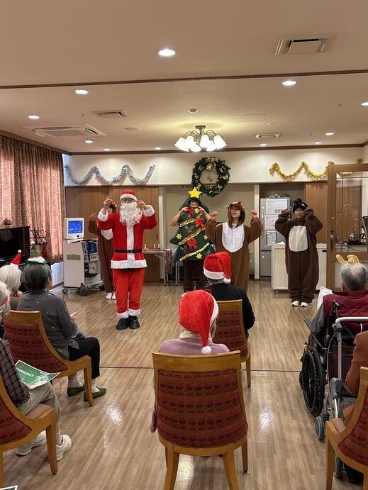 最初はケアスタッフによる「赤鼻のトナカイ」の曲に合わせてダンスを披露!!