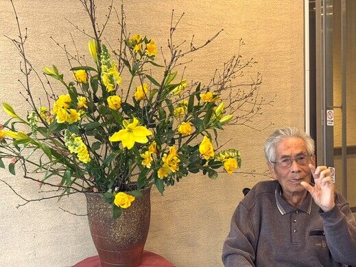 こちらのゲストは、この日は「ちょっとだけ」モデルさんを務めてくださるそうで、もう一枚、生け花と一緒に撮らせていただきました!