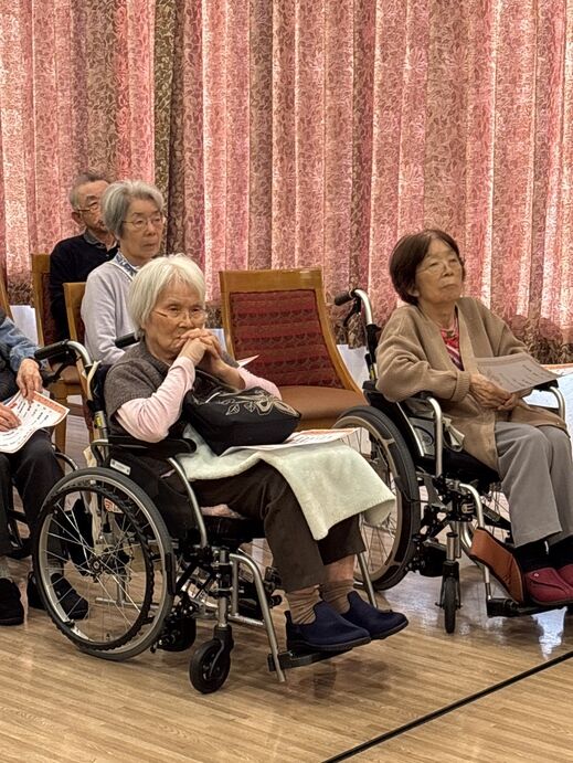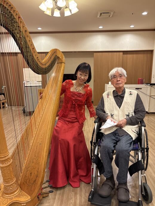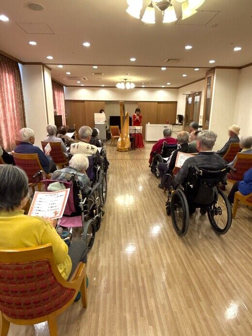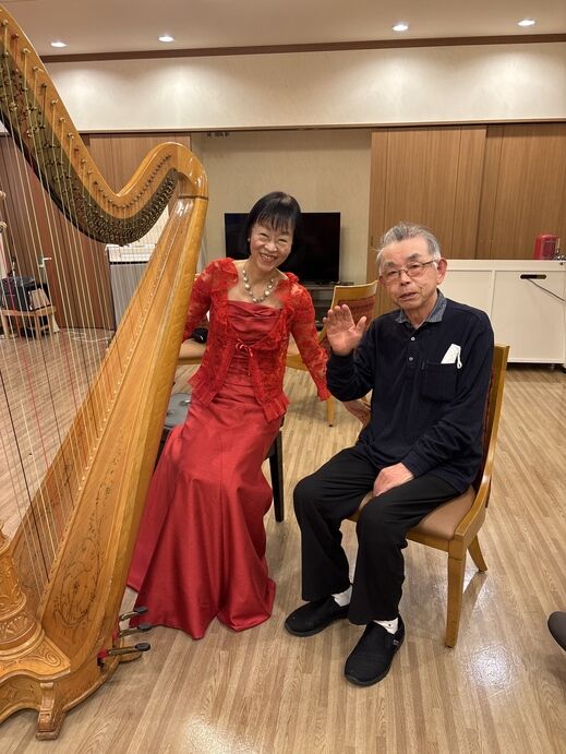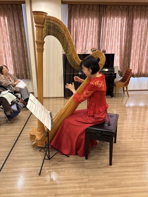 歌謡曲や唱歌、シャンソンなど全10曲を披露してくださり、素敵なハープの音色に皆さま聞き入っていらっしゃいました。