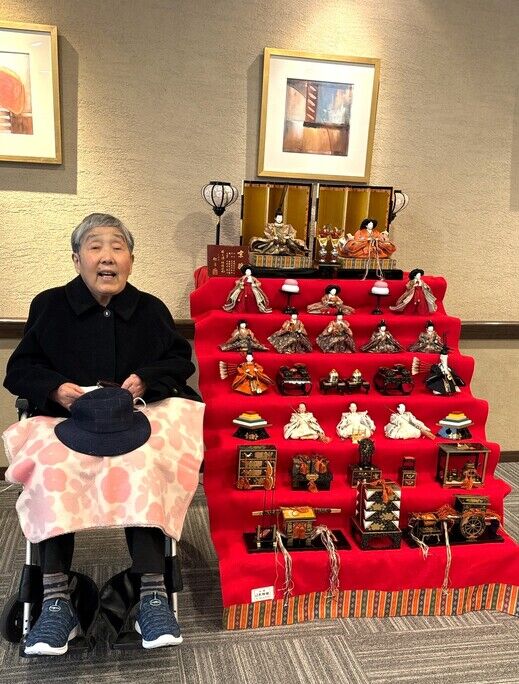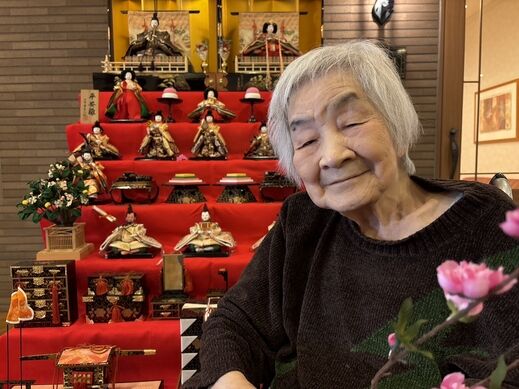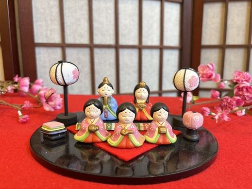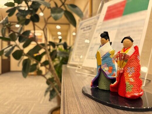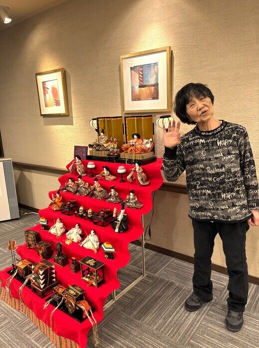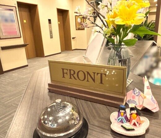 1階のフロントでも、ひな人形と外出前後のゲストをパシャリ📸✨