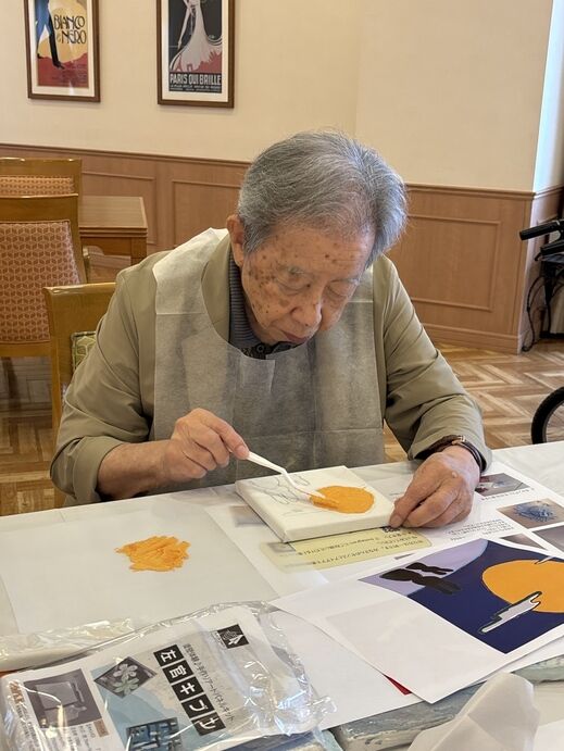 キャンバスの上に、見本を見ながら鉛筆で下書きをしていただきます。そしてペインティングナイフを使ってモデリングペーストを塗り上げ、世界でひとつだけの作品の完成です‼