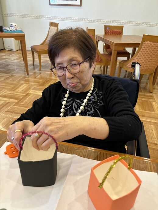 10月のクラフトサークルでは、ハロウィーンバックを作りました。ハロウィーンイベントに遊びに来てくれる近隣の保育園の園児に渡すためです。