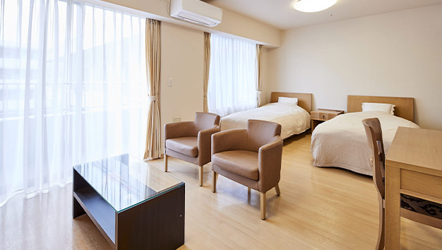 ご家族のご宿泊用に上質なホテル仕様の居室をご用意しています。