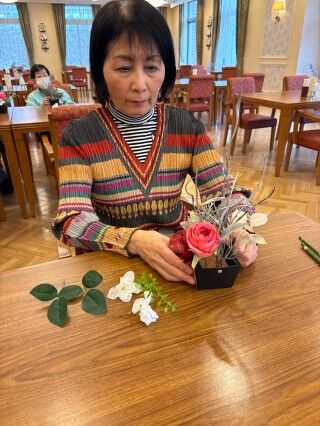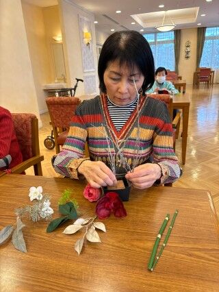 季節に一度の開催のクラブ「フラワーアレンジメント」の様子をお伝えいたします。