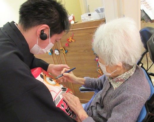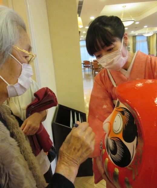 会場に入る時に、願いを込めてだるまに眼入れをしていただきました。