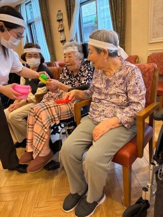 タマゴ送りリレーではコツをいち早く掴んでハイサッサ♬
