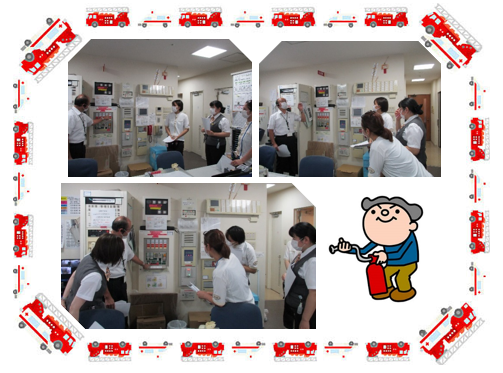防火管理者より消防設備や火災通報装置の説明、まわりの人に早く知らせる事や通報は慌てず正確に行う事の大切さの話をしていただきました。