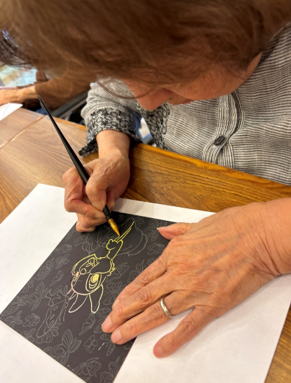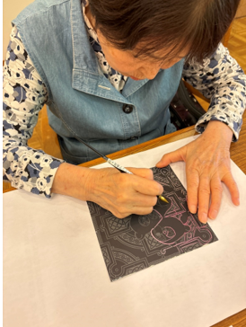 黒い特殊な紙をスクラッチ(削る)すると、カラフルな絵に仕上がります。