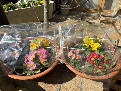毎日このお庭のお手入れをしてくださっているゲストが、お花を食べられてしまわないよう、手作りのカバーをかけてくださり、鳥から守ってくださっています。