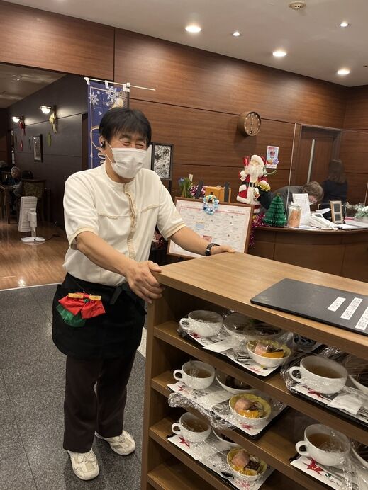本日のスイーツタイムはサンタクロースに扮したスタッフが、皆さまのもとへクリスマスケーキをお届けしました。
