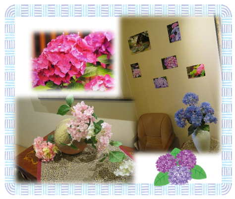 エレベーター前には、紫陽花の写真も展示。