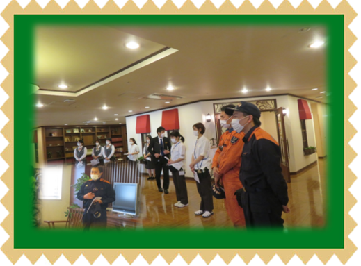 全ての階で避難完了の報告終了後、ご参加いただけるゲストにも集まっていただき、消防局の方よりお話をしていただきました。3年ぶりに消防局からの講話がございましたので、ゲストもより懸命に耳を傾けていらっしゃいました。