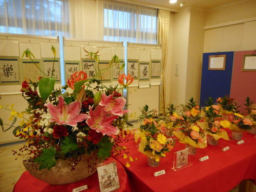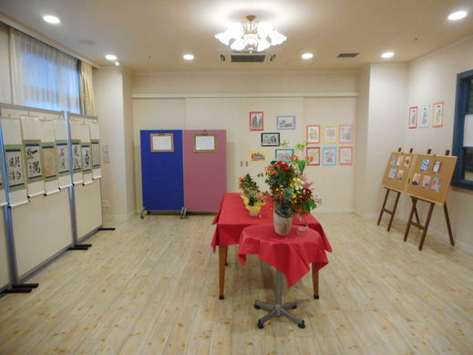 1階GTCルームに書道、フラワーアレンジメント、塗り絵などたくさんの