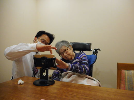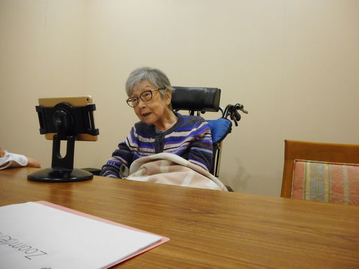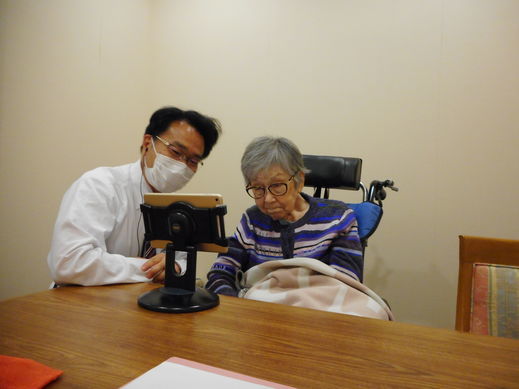 画面越しですが、スタッフ案内のもと、ご家族と久しぶりに会話を楽しまれています。