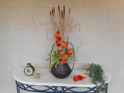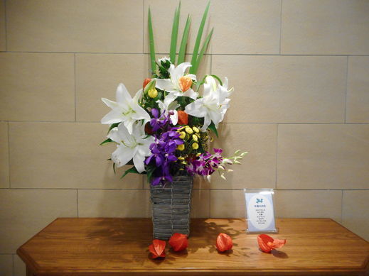 8月に入ってからグッドタイム リビング 横浜都筑では、お盆の飾りに欠かせないホオズキ(鬼灯)をエントランスに設えとして飾っております。