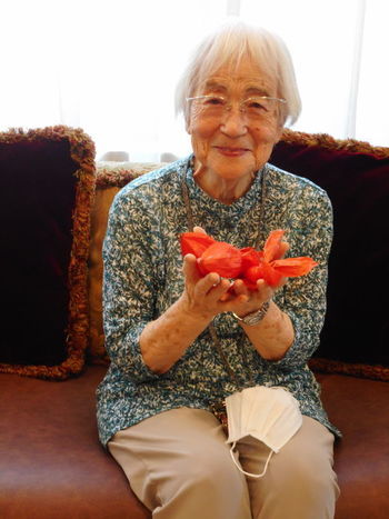 「実から種を取り出して、ほおずきの風船を作って・・音を鳴らして遊ぶのよ。」と、懐かしそうにお話をしてくださったK様。