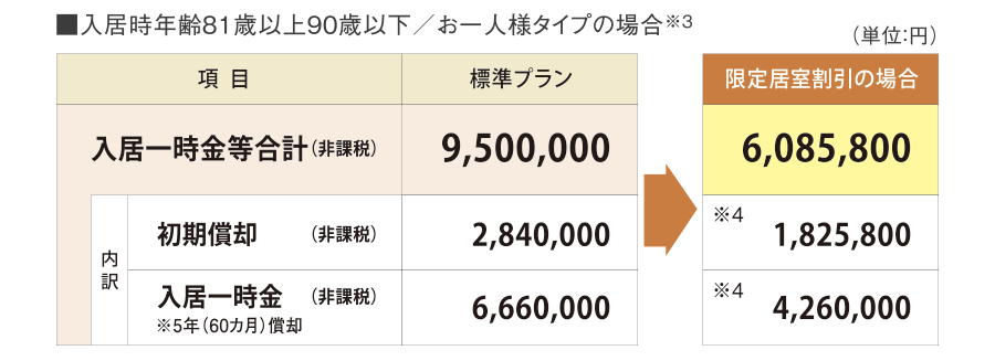 ※4. 入居一時金の標準プランの金額から240万円割引いたします。入居一時金の割引に伴い、