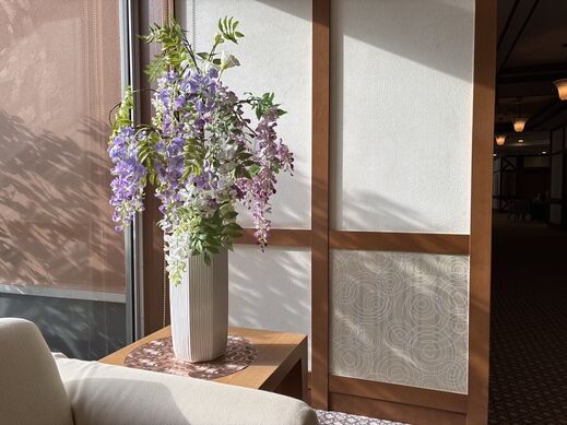 流れるように咲く藤の花のアートフラワーが涼やかです。